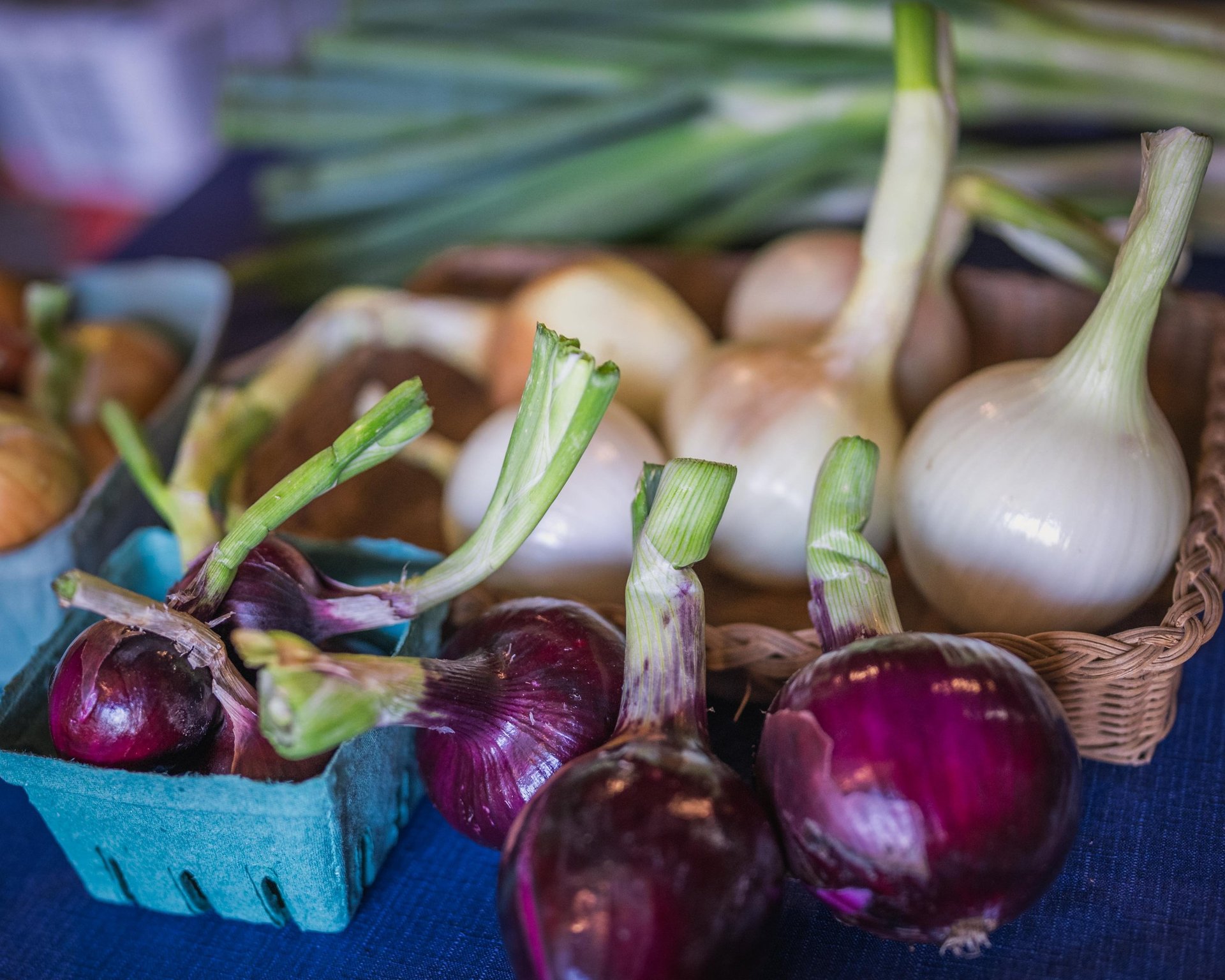 We offer seasonal fruits and veggies, market bouquets, and bedding plants, varying each week based on availability.
